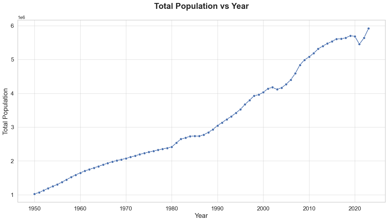 In this section, we aim to visualize the trend of total population over the years for Singapore. This is a crucial step in our exploratory data analysis (EDA) as it helps us understand the historical growth pattern and provides a foundation for our subsequent predictive modeling efforts.