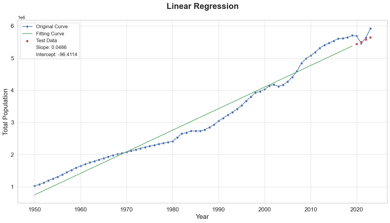 The primary goal of this section is to build a linear regression model that can predict the future population of Singapore based on historical data. We will use data from years 2019 and earlier as training data and validate our model using data from years beyond 2020.