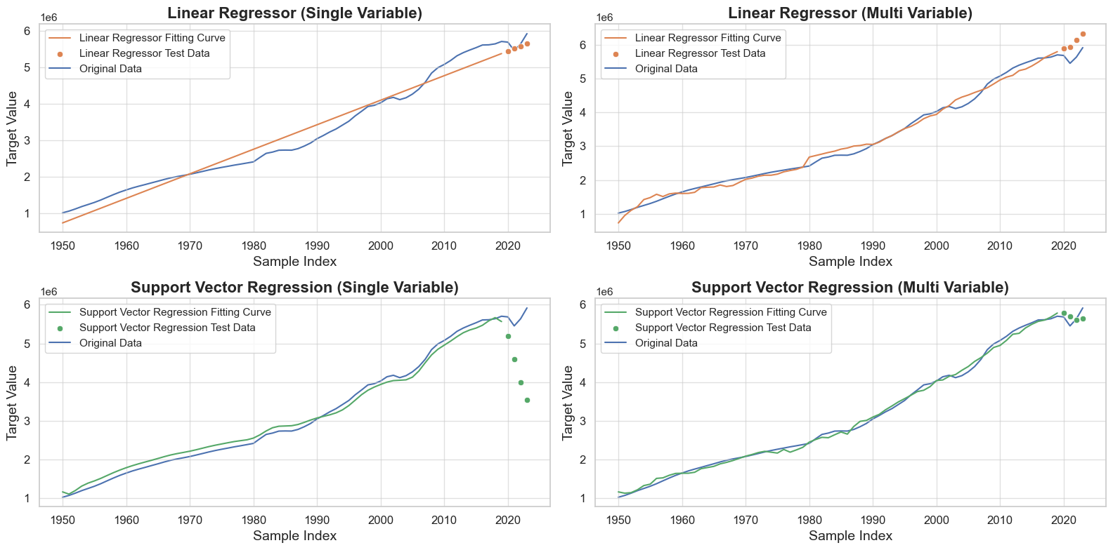 Additionally, we observed that the generalization ability of the SVR model changed greatly before and after the introduction of multiple variables. Initially, the SVR model exhibited severe overfitting, but with the inclusion of multiple variables, it demonstrated a normal prediction ability.